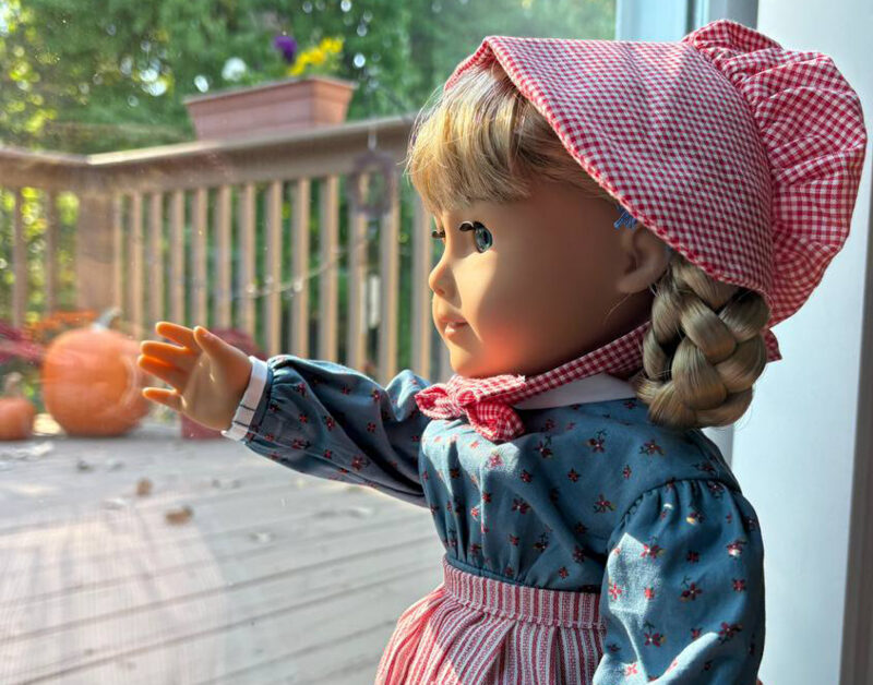 OH SHE is so beautiful!!!!! Perfect loving gift for mom. I had so many dolls too… my girlfriend and I always got the same dolls.. Sweet Sue is the closest I came to American Dolls…. she was so sweet like this one. Love the photos of her all over the place.. holding forks and on the porch… Caroline you are so wonderful to do this for your mom… and for us to see too. Blessings all, Love, Merrilyn Mc elderry ie Merri in Minnesota.