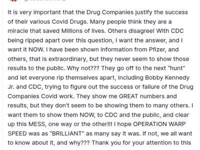 President Trump Calls for Transparency on Operation Warp Speed, Pfizer