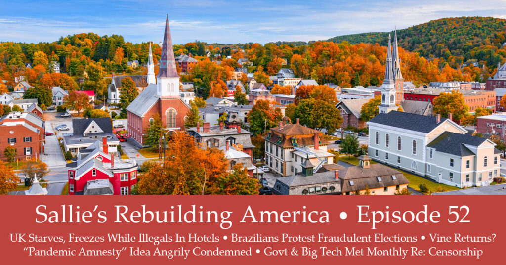 Welcome back to a new episode of Sallie’s Rebuilding America. This morning we’re going in-depth on some big developing stories. These include: UK Starves, Freezes While Illegals Hosted In Hotels Brazilians Protest Fraudulent Elections Vine Returns? “Pandemic Amnesty” Idea Angrily Condemned Govt & Big Tech Met Monthly To Coordinate Censorship (The Intercept) As always, feel free …