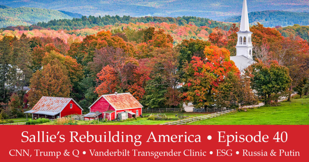 Welcome to a Thursday episode of Sallie’s Rebuilding America. We’re covering many topics including: Financial System Date Setting CNN, Don Lemon, and Reparations CNN, Trump, and Q Vanderbilt Transgender Clinic ESG Russia and Putin As always, feel free to leave a comment. I’d love to hear your thoughts about these interesting topics. Please Note: Due …