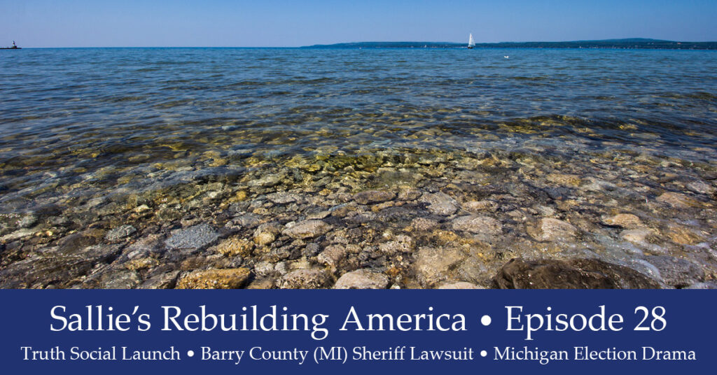 Welcome to Sunday evening’s episode of Sallie’s Rebuilding America. The coming week appears to be a big one and will lead into even bigger weeks as we head toward July. Let’s chat about some of the important happenings in the news including: Truth Social Launch Barry County (MI) Sheriff Lawsuit Michigan Election Drama As always, …