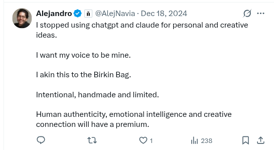 It’s kind of interesting because if I write with an “authoritative voice” then it can get flagged as AI. If I write in a more journaling style, it doesn’t get flagged. The problem is that journaling/blogging style doesn’t get picked up by search engines now. So you can write all you want, but no one will ever see it if they don’t land on your website through some other means.
