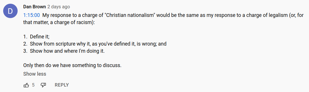 Pastor Chambers is also engaging in discussion with people in the YouTube comments if you want to check that out.
