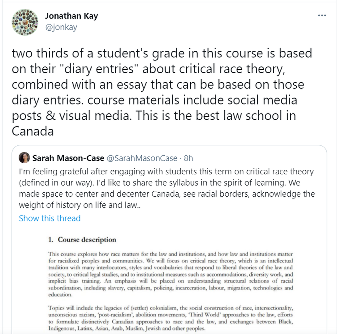 Forum Forums Current Events The Battle for West... Anti-Racism and CRT... Best Law School In ... Notifications Clear all Best Law School In Canada = Write a diary about critical race theory for 2/3 of your grade Anti-Racism and CRT (State-Sanctioned Racism) in Education Last Post by Sallie Borrink 5 years ago 1 Posts 1 Users 1 Reactions 332 Views RSS Sallie Borrink (@sallie) Posts: 6894 Illustrious Member Admin Topic starter "make space" and "decenter" = worthless degree ♥ Wife, homeschooling mom, conspiracy analyst ♥ Posted : Tuesday, April 6, 2021 4:43 pm Amy C reacted Super Globals Requests: Server: Options and Features route: community use_home_url: url: https://sallieborrink.com/community/ pageid:145756 default_groupid: 3 2022