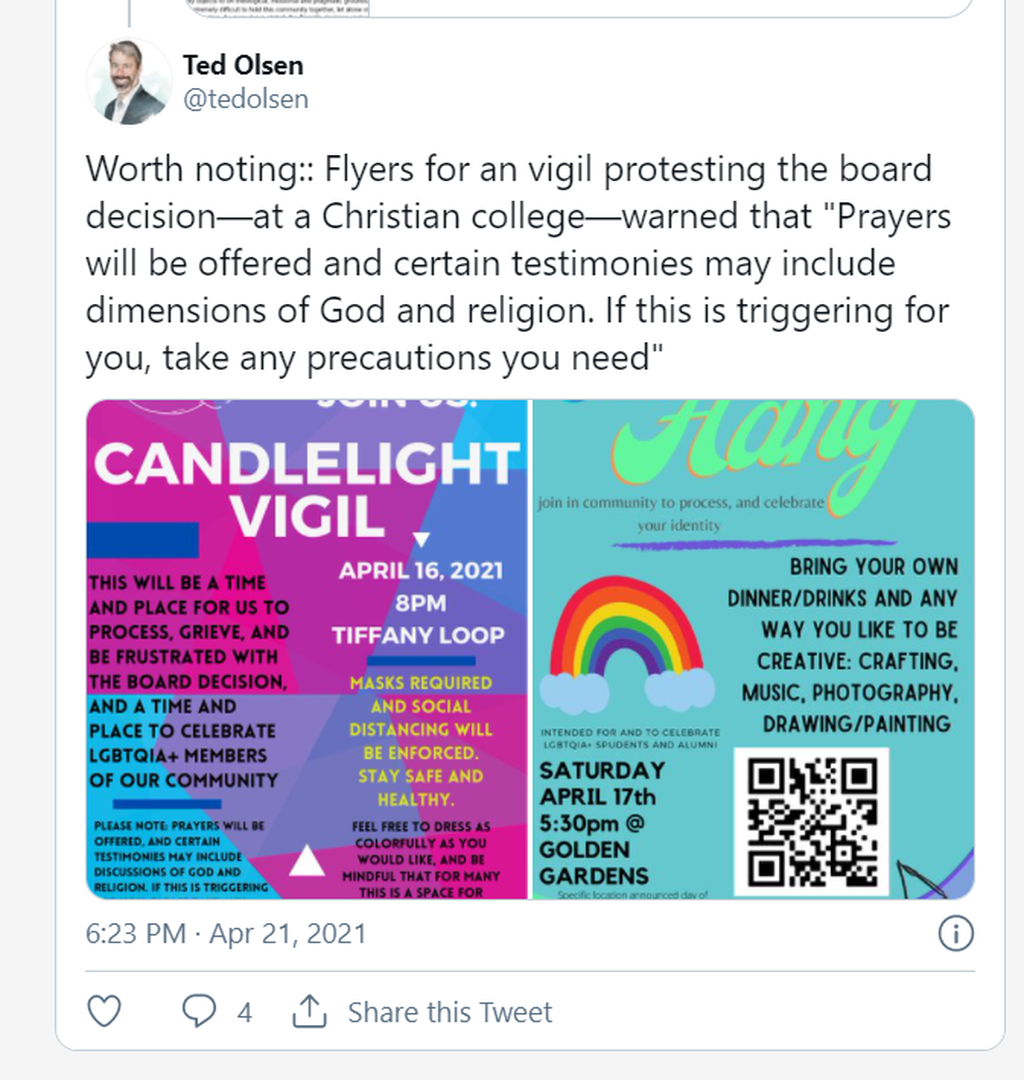 Matt Bellinger, an assistant professor of communication at the college, described the board’s decision to affirm biblical sexuality as “so out of touch with the convictions and values of the SPU community,” arguing it “calls into question the legitimacy of the board’s leadership.”