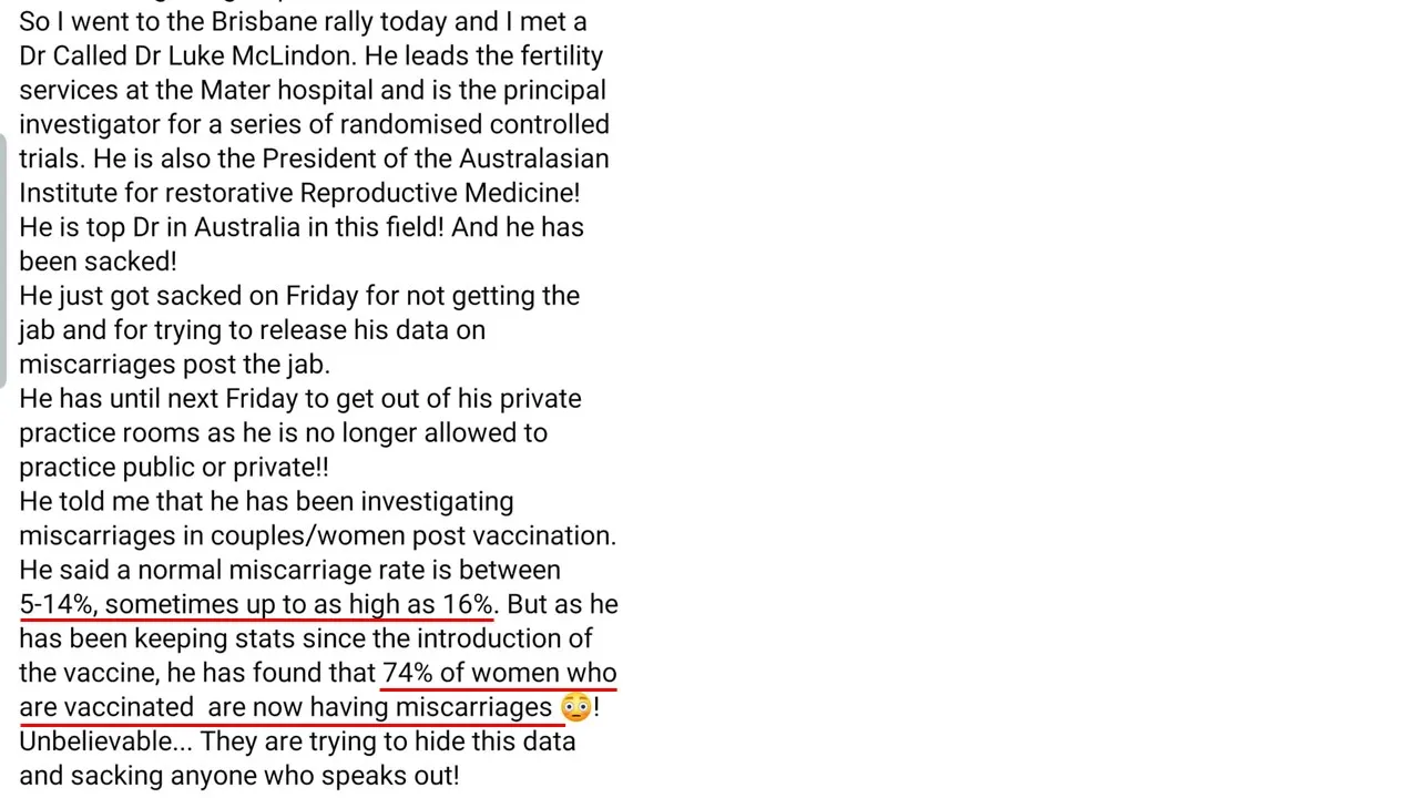 I saw this posted in telegram relating to a Brisbane, Australia Fertility doctor from just the past weekend.
