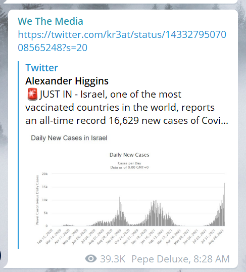 Forum Forums Current Events In The News Coronavirus Coronavirus and Vac... Notifications Clear all Coronavirus and Vaccines in Israel - Ongoing thread Page 2 / 2 Prev 1 2 Coronavirus Last Post by Sallie Borrink 4 years ago 10 Posts 1 Users 10 Reactions 1,008 Views RSS Sallie Borrink (@sallie) Posts: 6885 Illustrious Member Admin Topic starter ♥ Wife, homeschooling mom, conspiracy analyst ♥ Posted : Thursday, September 2, 2021 9:28 pm Amanda reacted Sallie Borrink (@sallie) Posts: 6885 Illustrious Member Admin Topic starter ♥ Wife, homeschooling mom, conspiracy analyst ♥ Posted : Thursday, September 2, 2021 9:29 pm Amanda reacted Page 2 / 2 Prev 1 2 Super Globals Requests: Server: Options and Features route: community use_home_url: url: https://sallieborrink.com/community/ pageid:145756 default_groupid: 3 2022