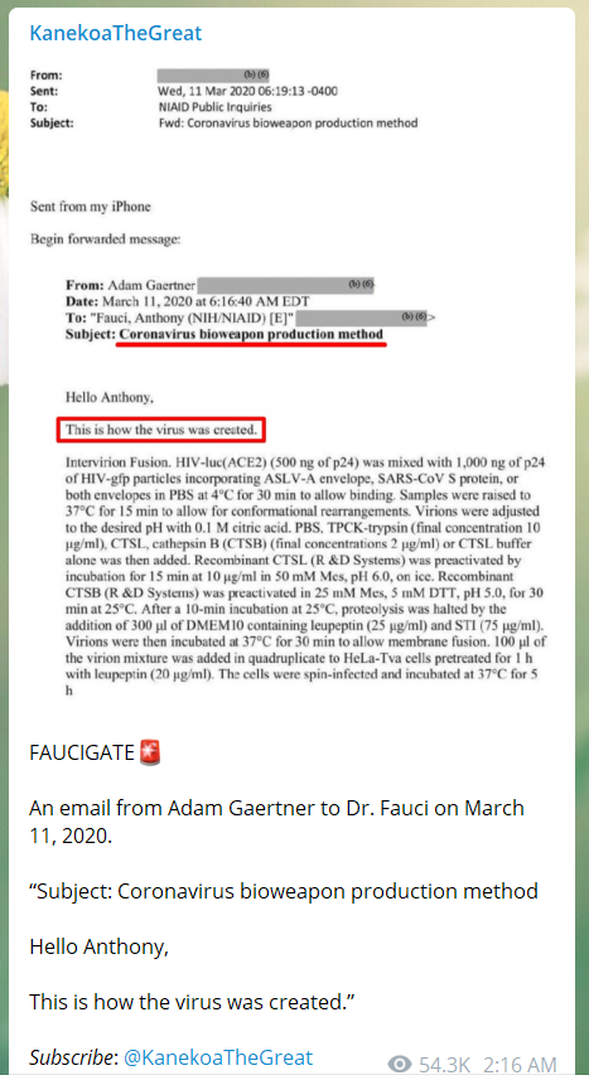 LEOPOLD NIH FOIA Anthony Fauci Emails