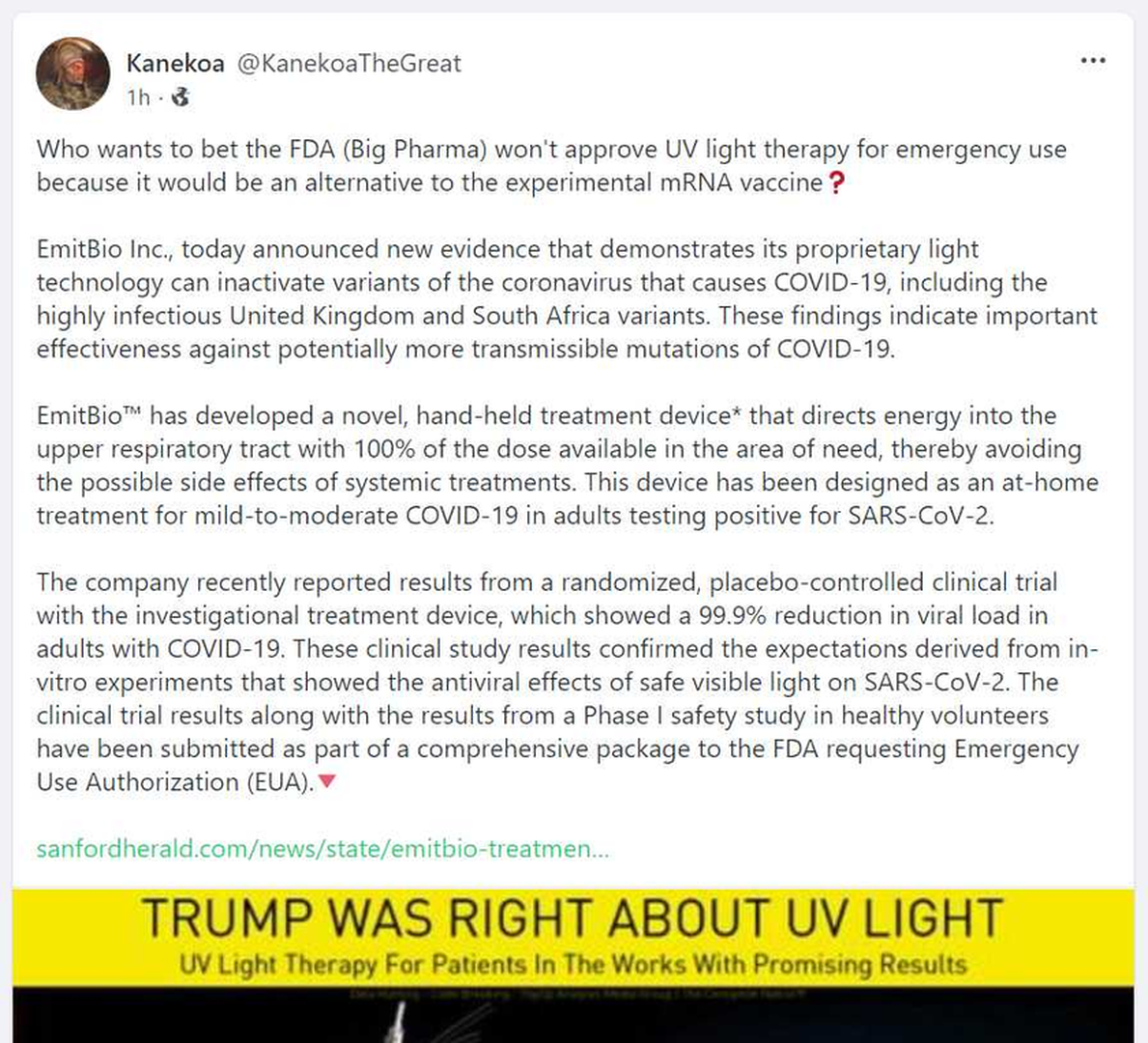 Forum Forums Current Events In The News Coronavirus Remember When They ... Notifications Clear all Remember When They Mocked President Trump About the UV Light Treatment? Coronavirus Last Post by Sallie Borrink 5 years ago 1 Posts 1 Users 2 Reactions 216 Views RSS Sallie Borrink (@sallie) Posts: 6885 Illustrious Member Admin Topic starter ♥ Wife, homeschooling mom, conspiracy analyst ♥ Posted : Monday, March 22, 2021 3:29 pm Amy C and Amanda reacted Super Globals Requests: Server: Options and Features route: community use_home_url: url: https://sallieborrink.com/community/ pageid:145756 default_groupid: 3 2022