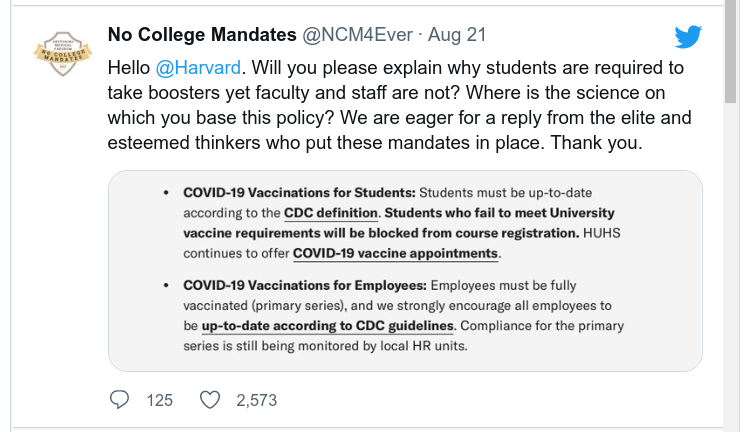 Harvard is requiring boosters for students, but not faculty and staff. Just wait until the students start dropping dead. We haven't seen anything yet like what is coming. I hope you are prepared mentally, emotionally, and spiritually for what we are going to witness in this country.