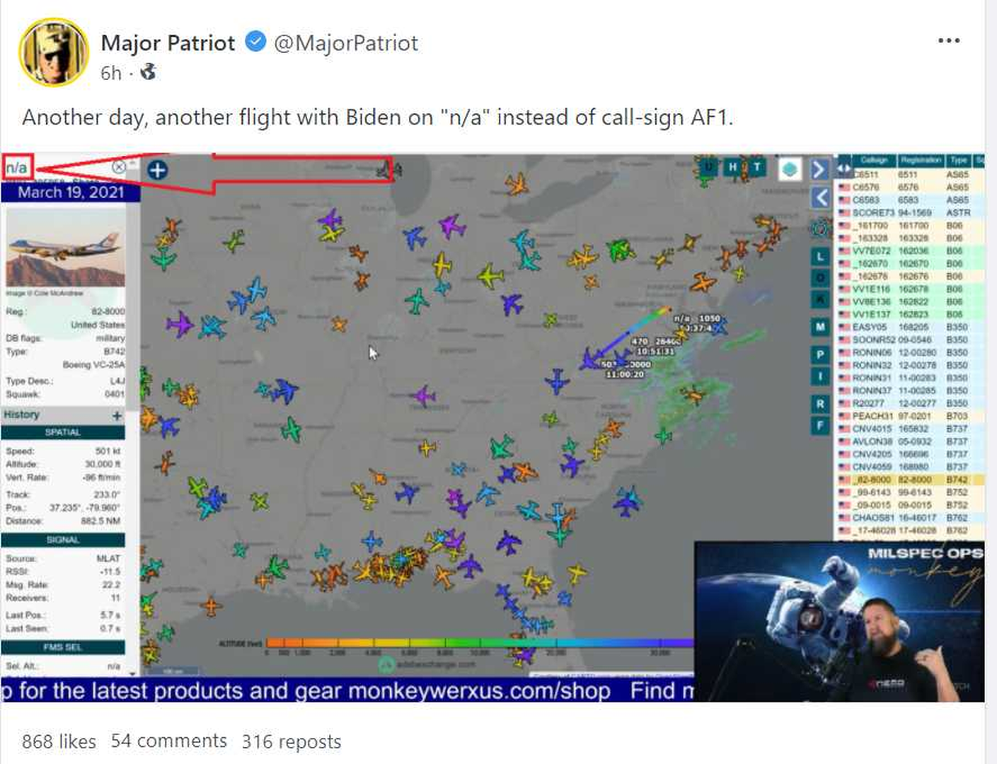 MonkeyWerks is former Air Force and has been tracking flights for ages. He's said over and over again that he can't figure out what is going on. He's never seen anything like this.