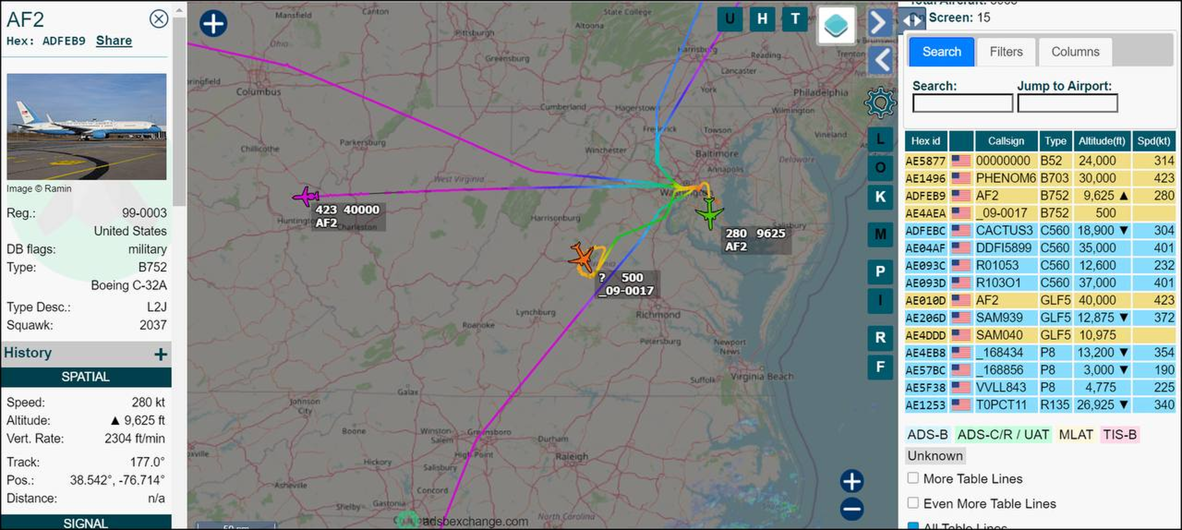 Today there are two AF2 signals up at the same time. This is the signal for the Vice President.