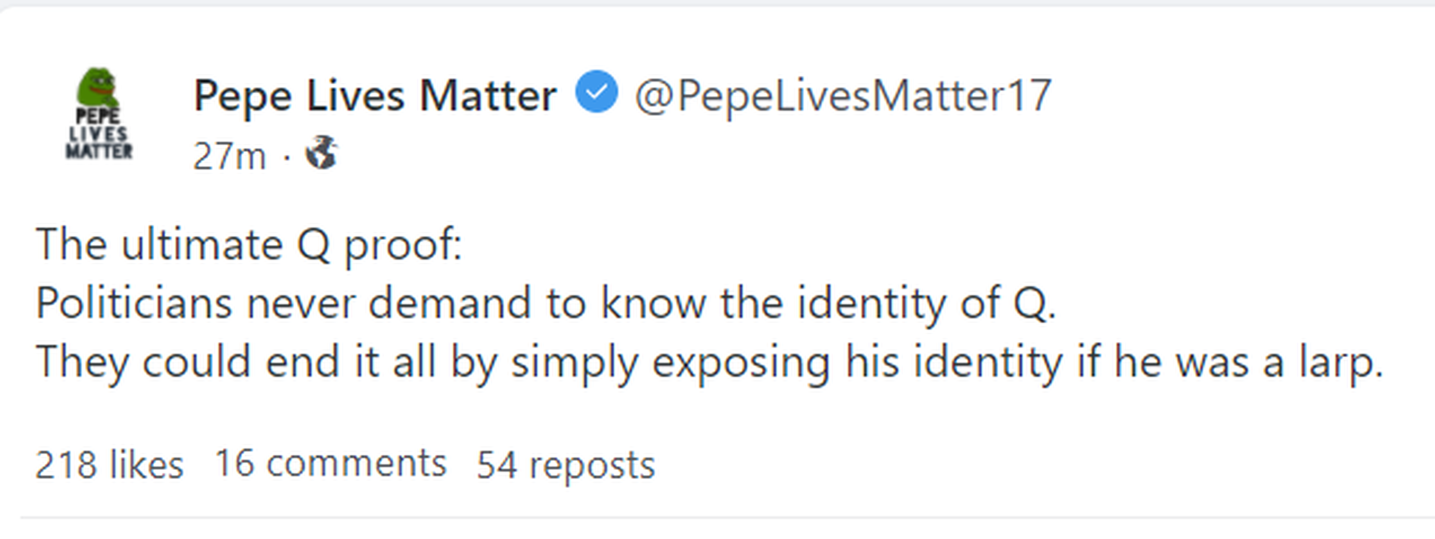 So why doesn't anyone simply expose whoever Q is and end it? Wouldn't one side want to expose the other as responsible?