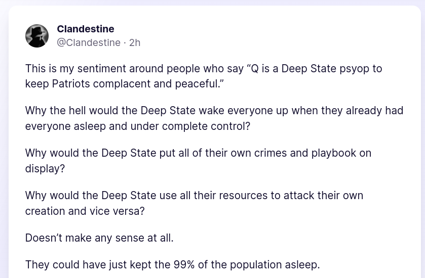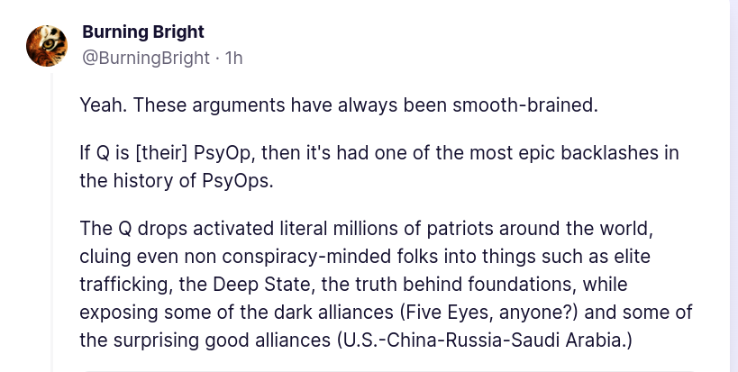 Forum Forums Current Events Everything Q Is Q A Deep State P... Notifications Clear all Is Q A Deep State Psyop? Everything Q Last Post by Sallie Borrink 3 years ago 2 Posts 1 Users 2 Reactions 149 Views RSS Sallie Borrink (@sallie) Posts: 6885 Illustrious Member Admin Topic starter ♥ Wife, homeschooling mom, conspiracy analyst ♥ Posted : Tuesday, August 30, 2022 11:46 am Amanda reacted Sallie Borrink (@sallie) Posts: 6885 Illustrious Member Admin Topic starter ♥ Wife, homeschooling mom, conspiracy analyst ♥ Posted : Tuesday, September 13, 2022 12:32 pm Amanda reacted Super Globals Requests: Server: Options and Features route: community use_home_url: url: https://sallieborrink.com/community/ pageid:145756 default_groupid: 3 2022