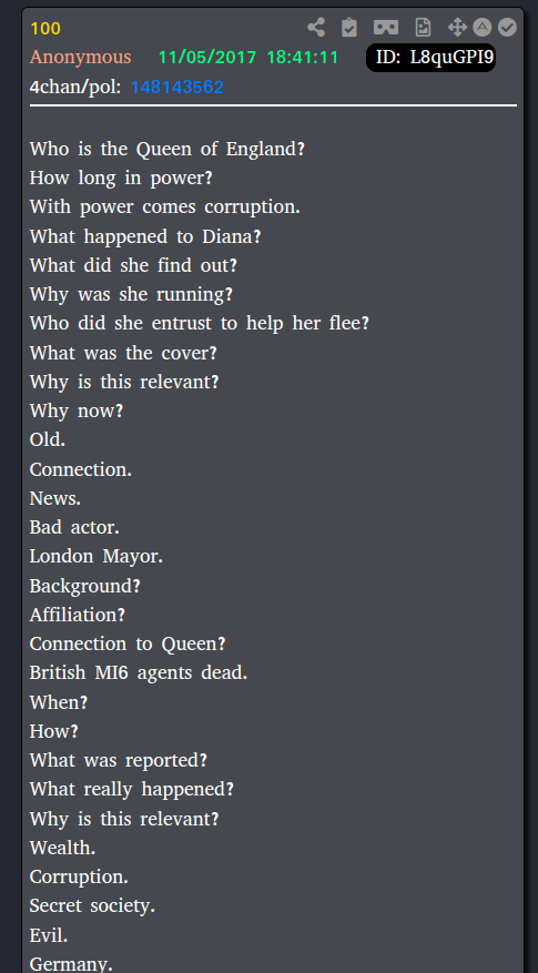 Remember the point of the Q drops was to teach anons how to dig for information. This is a series of questions designed to make them dig for truth.