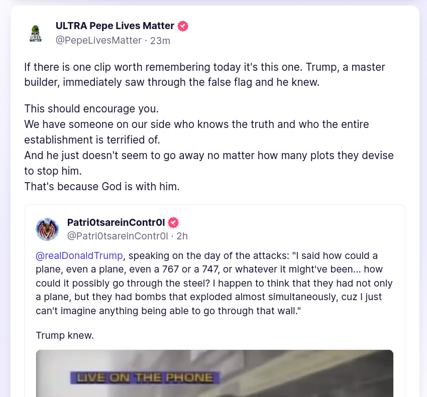 Video link: https://truthsocial.com/@PepeLivesMatter/posts/108981019702721700