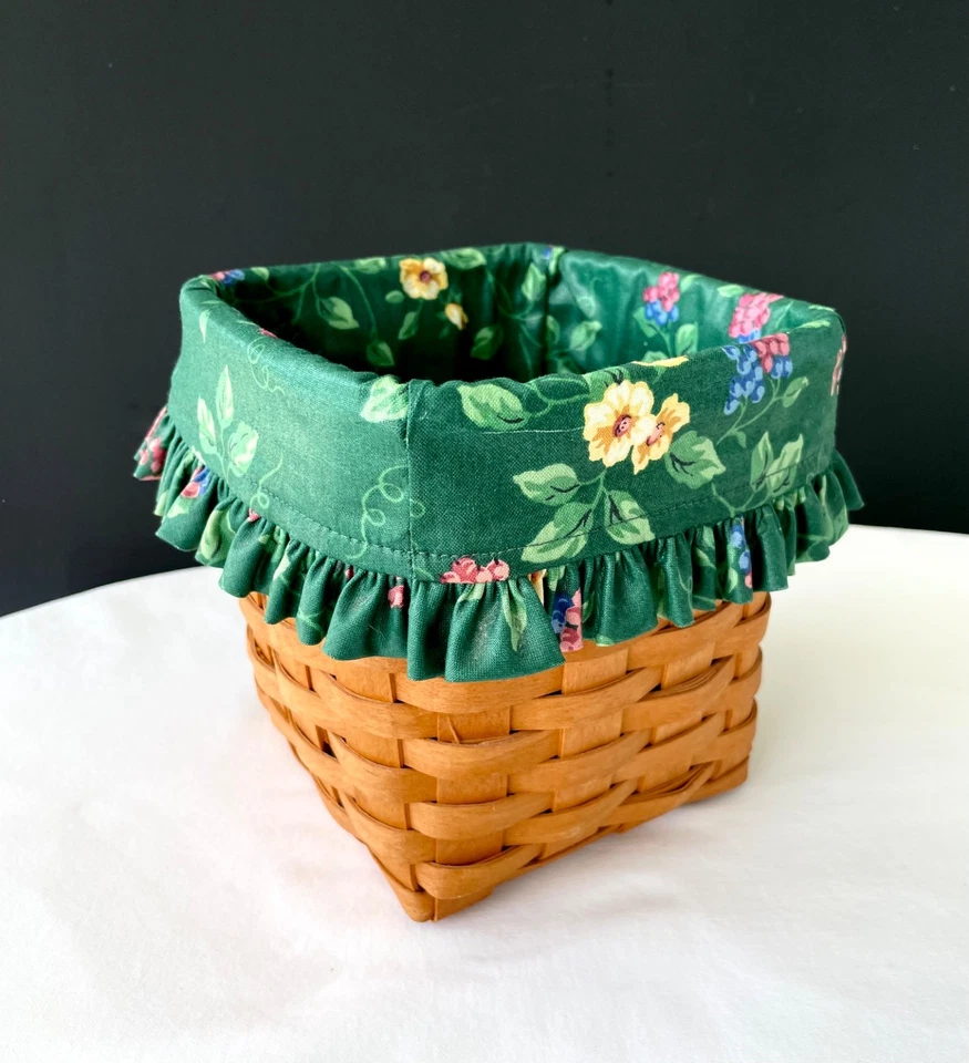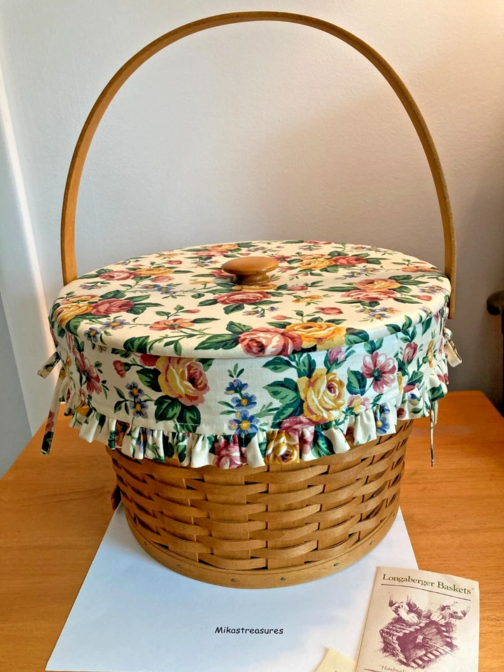 My sewing basket to this day is a Longaberger I bought when I hosted a party around 1995. It has a green fabric floral lid and liner that goes over the edge. I still love it.