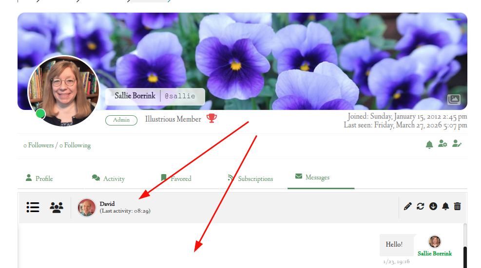 If you want to message someone, click on their name/picture to go to their profile. Click the envelope.