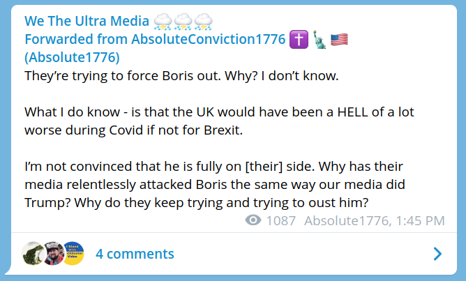 I agree with the comment below. I'm still a bit up in the air about Boris Johnson. He may be playing a role for the good guys. Would not bet any money on this, but I do wonder.