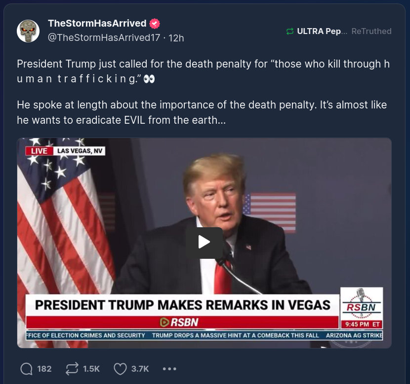 This is important. Remember what we discussed in one of my videos about the expansion of Gitmo. Trump has been slowly - very slowly - introducing the idea of more wide-spread capital punishment. He signed Executive Orders about this. There is a reason he spoke about this at length now.