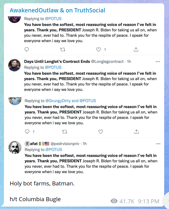 Forum Forums Current Events In The News Sallie's Stack Arch... July 2022 Week of July 24, 20... Notifications Clear all Week of July 24, 2022 Page 3 / 11 Prev 1 2 3 4 5 6 7 8 9 10 11 Next July 2022 Last Post by Sallie Borrink 3 years ago 88 Posts 1 Users 174 Reactions 2,396 Views RSS Sallie Borrink (@sallie) Posts: 6885 Illustrious Member Admin Topic starter ♥ Wife, homeschooling mom, conspiracy analyst ♥ Posted : Monday, July 25, 2022 12:33 pm Amy C and Amanda reacted Sallie Borrink (@sallie) Posts: 6885 Illustrious Member Admin Topic starter ♥ Wife, homeschooling mom, conspiracy analyst ♥ Posted : Monday, July 25, 2022 12:34 pm Amy C, Amanda and David reacted Sallie Borrink (@sallie) Posts: 6885 Illustrious Member Admin Topic starter ♥ Wife, homeschooling mom, conspiracy analyst ♥ Posted : Monday, July 25, 2022 12:35 pm Amy C and Amanda reacted Sallie Borrink (@sallie) Posts: 6885 Illustrious Member Admin Topic starter ♥ Wife, homeschooling mom, conspiracy analyst ♥ Posted : Monday, July 25, 2022 12:37 pm Amy C and Amanda reacted Sallie Borrink (@sallie) Posts: 6885 Illustrious Member Admin Topic starter ♥ Wife, homeschooling mom, conspiracy analyst ♥ Posted : Monday, July 25, 2022 12:56 pm Amy C and Amanda reacted Sallie Borrink (@sallie) Posts: 6885 Illustrious Member Admin Topic starter Bot Farms in action ♥ Wife, homeschooling mom, conspiracy analyst ♥ Posted : Monday, July 25, 2022 12:59 pm Amy C and Amanda reacted Sallie Borrink (@sallie) Posts: 6885 Illustrious Member Admin Topic starter ♥ Wife, homeschooling mom, conspiracy analyst ♥ Posted : Monday, July 25, 2022 1:00 pm Amy C, Amanda and David reacted Sallie Borrink (@sallie) Posts: 6885 Illustrious Member Admin Topic starter Another one with the exact same spiel ♥ Wife, homeschooling mom, conspiracy analyst ♥ Posted : Monday, July 25, 2022 1:01 pm Amy C and Amanda reacted Page 3 / 11 Prev 1 2 3 4 5 6 7 8 9 10 11 Next Super Globals Requests: Server: Options and Features route: community use_home_url: url: https://sallieborrink.com/community/ pageid:145756 default_groupid: 3 2022