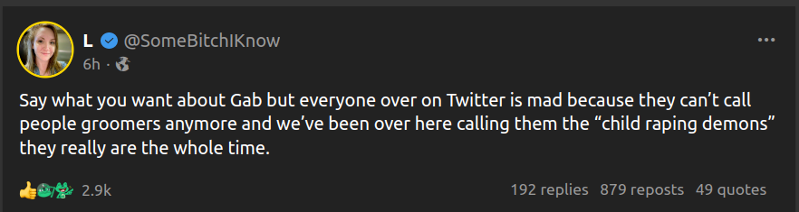 Say what you want about Gab, there is no censoring of speech or the truth. Someday more people will realize how important that platform is/was in terms of saving America.