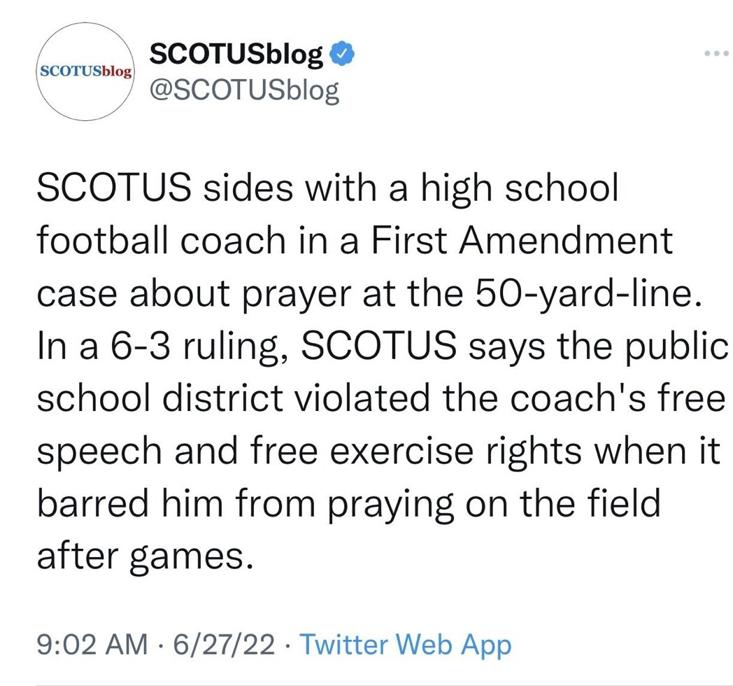 Forum Forums Current Events In The News Sallie's Stack Arch... June 2022 June 27, 2022 - Mon... Notifications Clear all June 27, 2022 - Monday Page 3 / 6 Prev 1 2 3 4 5 6 Next June 2022 Last Post by Sallie Borrink 4 years ago 45 Posts 1 Users 0 Reactions 904 Views RSS Sallie Borrink (@sallie) Posts: 6894 Illustrious Member Admin Topic starter ♥ Wife, homeschooling mom, conspiracy analyst ♥ Posted : Monday, June 27, 2022 11:31 am Sallie Borrink (@sallie) Posts: 6894 Illustrious Member Admin Topic starter https://www.projectveritasaction.com/news/south-carolina-democrat-state-rep-and-u-s-senate-candidate-krystle-matthews/ ♥ Wife, homeschooling mom, conspiracy analyst ♥ Posted : Monday, June 27, 2022 11:32 am Sallie Borrink (@sallie) Posts: 6894 Illustrious Member Admin Topic starter New York Supreme Court rules non-citizens cannot vote in elections. Okay, this one shocked me. In a good way. But shocked nonetheless. ♥ Wife, homeschooling mom, conspiracy analyst ♥ Posted : Monday, June 27, 2022 11:41 am Sallie Borrink (@sallie) Posts: 6894 Illustrious Member Admin Topic starter ♥ Wife, homeschooling mom, conspiracy analyst ♥ Posted : Monday, June 27, 2022 11:42 am Sallie Borrink (@sallie) Posts: 6894 Illustrious Member Admin Topic starter SCOTUS rules on right to pray in public ♥ Wife, homeschooling mom, conspiracy analyst ♥ Posted : Monday, June 27, 2022 11:43 am Sallie Borrink (@sallie) Posts: 6894 Illustrious Member Admin Topic starter ♥ Wife, homeschooling mom, conspiracy analyst ♥ Posted : Monday, June 27, 2022 11:45 am Sallie Borrink (@sallie) Posts: 6894 Illustrious Member Admin Topic starter ♥ Wife, homeschooling mom, conspiracy analyst ♥ Posted : Monday, June 27, 2022 11:46 am Sallie Borrink (@sallie) Posts: 6894 Illustrious Member Admin Topic starter ♥ Wife, homeschooling mom, conspiracy analyst ♥ Posted : Monday, June 27, 2022 11:47 am Page 3 / 6 Prev 1 2 3 4 5 6 Next Super Globals Requests: Server: Options and Features route: community use_home_url: url: https://sallieborrink.com/community/ pageid:145756 default_groupid: 3 2022