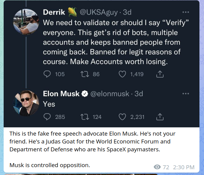Interesting idea that Elon Musk is a Judas Goat. Maybe, but I'm not convinced.