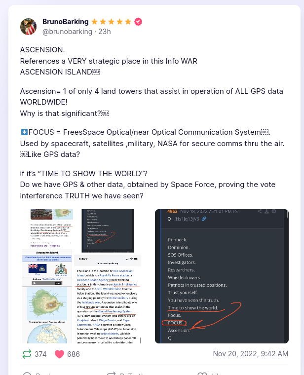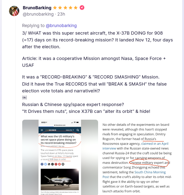 There was a new Q drop last week. Here are two interesting threads about it on Truth Social that explain some of the high-tech military equipment that it is probably referring to.