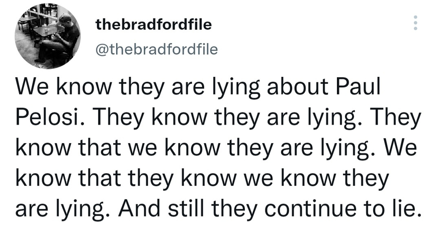 I thought about doing a Paul Pelosi thread, but I'm just going to drop the best bits in this week's thread.