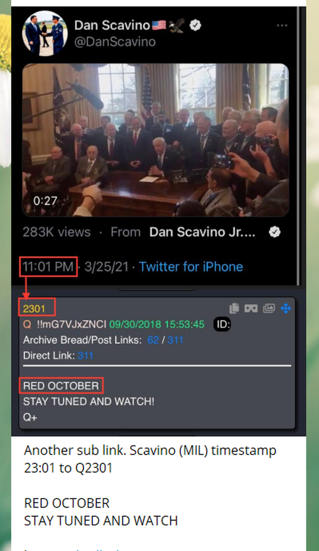 If you haven't read my initial posts and video in the "Everything Q" forum, this may not make sense to you. Dan Scavino was President Trump's White House Deputy Chief of Staff & Director of Social Media. He still works with President Trump at Mar-a-Lago and is one of the key people who sends out social media (Twitter, Facebook, Instagram) to anons (people who follow the Q thing). Whether you choose to believe it or not, that's reality.