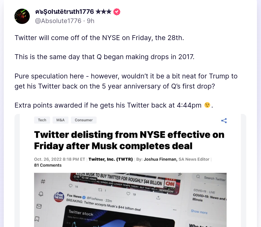 Forum Forums Current Events In The News Elon Musk Buying Tw... Notifications Clear all Elon Musk Buying Twitter (Ongoing MEGA Resource Thread) Page 3 / 4 Prev 1 2 3 4 Next In The News Last Post by Sallie Borrink 3 years ago 29 Posts 1 Users 9 Reactions 504 Views RSS Sallie Borrink (@sallie) Posts: 6894 Illustrious Member Admin Topic starter https://www.zerohedge.com/markets/biden-admin-weighs-blocking-twitter-deal-national-security-grounds-just-musk-wanted ♥ Wife, homeschooling mom, conspiracy analyst ♥ Posted : Friday, October 21, 2022 6:59 am Sallie Borrink (@sallie) Posts: 6894 Illustrious Member Admin Topic starter ♥ Wife, homeschooling mom, conspiracy analyst ♥ Posted : Thursday, October 27, 2022 3:07 pm Sallie Borrink (@sallie) Posts: 6894 Illustrious Member Admin Topic starter ♥ Wife, homeschooling mom, conspiracy analyst ♥ Posted : Thursday, October 27, 2022 3:08 pm Sallie Borrink (@sallie) Posts: 6894 Illustrious Member Admin Topic starter ♥ Wife, homeschooling mom, conspiracy analyst ♥ Posted : Thursday, October 27, 2022 3:15 pm Sallie Borrink (@sallie) Posts: 6894 Illustrious Member Admin Topic starter How many times were conservatives told this? ♥ Wife, homeschooling mom, conspiracy analyst ♥ Posted : Sunday, October 30, 2022 2:48 pm Sallie Borrink (@sallie) Posts: 6894 Illustrious Member Admin Topic starter ♥ Wife, homeschooling mom, conspiracy analyst ♥ Posted : Sunday, October 30, 2022 2:53 pm Sallie Borrink (@sallie) Posts: 6894 Illustrious Member Admin Topic starter ♥ Wife, homeschooling mom, conspiracy analyst ♥ Posted : Sunday, October 30, 2022 2:55 pm Sallie Borrink (@sallie) Posts: 6894 Illustrious Member Admin Topic starter ♥ Wife, homeschooling mom, conspiracy analyst ♥ Posted : Sunday, October 30, 2022 2:56 pm Page 3 / 4 Prev 1 2 3 4 Next Super Globals Requests: Server: Options and Features route: community use_home_url: url: https://sallieborrink.com/community/ pageid:145756 default_groupid: 3 2022