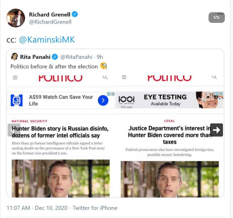 Someone showed screen caps yesterday and none of the major newspapers had a SINGLE mention of the Hunter Biden and Joe Biden situation on the front page. These are lies of omission.