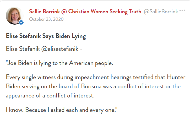 Every single witness during impeachment hearings testified that Hunter Biden serving on the board of Burisma was a conflict of interest or the appearance of a conflict of interest.