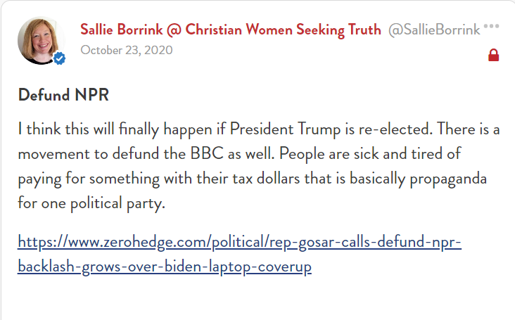 I think this will finally happen if President Trump is re-elected. There is a movement to defund the BBC as well. People are sick and tired of paying for something with their tax dollars that is basically propaganda for one political party.