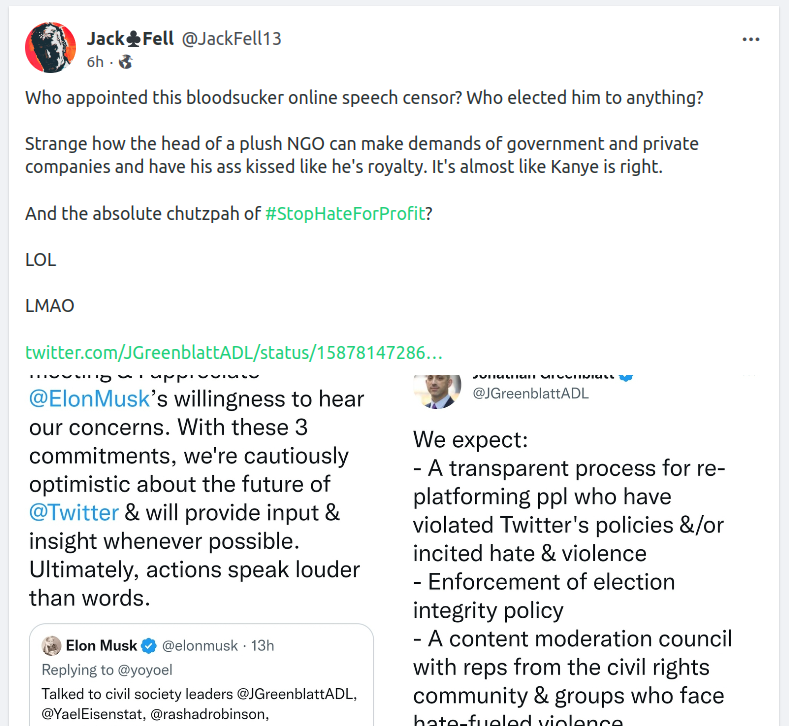 It is beyond wild what is going on with these stories. However, the short of it is the ADL has decided to take on three of the most powerful and rich men in the country/world. Two of them are black which makes it even more interesting. There is no other way to describe it other than flat out bullying behavior. They clearly - and I mean CLEARLY - believe they can bully these men into doing WHATEVER they tell them to.