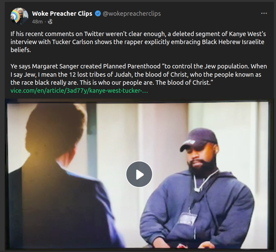 https://www.vice. com/en/article/3ad77y/kanye-west-tucker- carlson-leaked-footage-antisemitism-fake-children