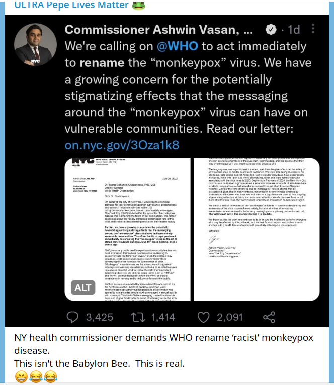 Forum Forums Current Events In The News Monkeypox News Notifications Clear all Monkeypox News Page 3 / 4 Prev 1 2 3 4 Next In The News Last Post by Sallie Borrink 3 years ago 26 Posts 1 Users 26 Reactions 741 Views RSS Sallie Borrink (@sallie) Posts: 6894 Illustrious Member Admin Topic starter ♥ Wife, homeschooling mom, conspiracy analyst ♥ Posted : Wednesday, July 27, 2022 6:22 pm Amanda reacted Sallie Borrink (@sallie) Posts: 6894 Illustrious Member Admin Topic starter ♥ Wife, homeschooling mom, conspiracy analyst ♥ Posted : Wednesday, July 27, 2022 7:28 pm Amanda reacted Sallie Borrink (@sallie) Posts: 6894 Illustrious Member Admin Topic starter ♥ Wife, homeschooling mom, conspiracy analyst ♥ Posted : Wednesday, July 27, 2022 7:30 pm Amanda reacted Sallie Borrink (@sallie) Posts: 6894 Illustrious Member Admin Topic starter I couldn't resist. LOL! ♥ Wife, homeschooling mom, conspiracy analyst ♥ Posted : Thursday, July 28, 2022 11:07 am Amanda reacted Sallie Borrink (@sallie) Posts: 6894 Illustrious Member Admin Topic starter ♥ Wife, homeschooling mom, conspiracy analyst ♥ Posted : Thursday, July 28, 2022 4:07 pm Amanda reacted Sallie Borrink (@sallie) Posts: 6894 Illustrious Member Admin Topic starter ♥ Wife, homeschooling mom, conspiracy analyst ♥ Posted : Thursday, July 28, 2022 8:42 pm Amanda reacted Sallie Borrink (@sallie) Posts: 6894 Illustrious Member Admin Topic starter ♥ Wife, homeschooling mom, conspiracy analyst ♥ Posted : Tuesday, August 2, 2022 9:33 pm Amanda reacted Sallie Borrink (@sallie) Posts: 6894 Illustrious Member Admin Topic starter ♥ Wife, homeschooling mom, conspiracy analyst ♥ Posted : Tuesday, August 2, 2022 9:35 pm Amanda reacted Page 3 / 4 Prev 1 2 3 4 Next Super Globals Requests: Server: Options and Features route: community use_home_url: url: https://sallieborrink.com/community/ pageid:145756 default_groupid: 3 2022