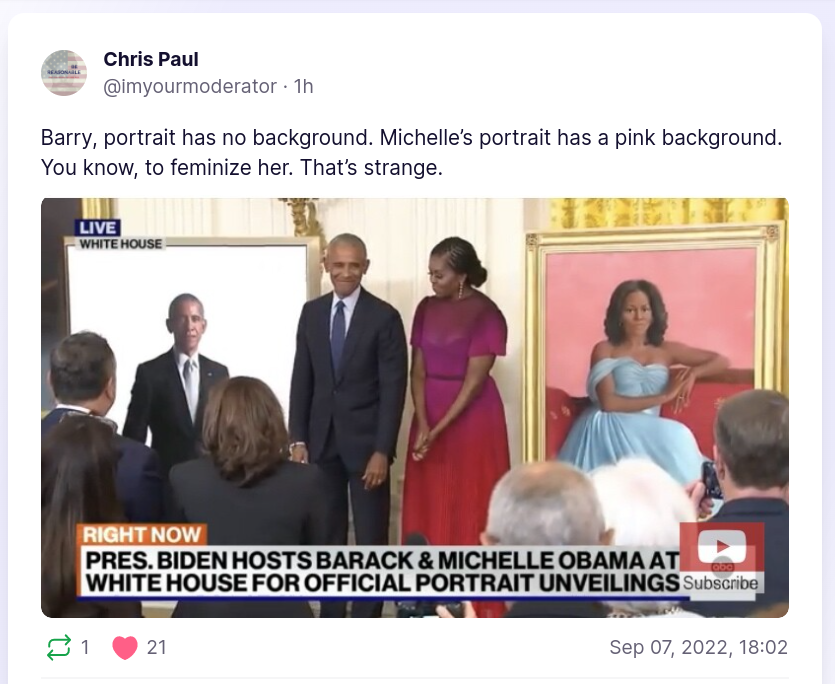 Forum Forums Current Events In The News New Barack and Mich... Notifications Clear all New Barack and Michelle Obama Portraits In The News Last Post by Sallie Borrink 3 years ago 2 Posts 1 Users 2 Reactions 160 Views RSS Sallie Borrink (@sallie) Posts: 6885 Illustrious Member Admin Topic starter Wow. There's a lot that could be discussed with these... ♥ Wife, homeschooling mom, conspiracy analyst ♥ Posted : Wednesday, September 7, 2022 6:27 pm Amanda reacted Sallie Borrink (@sallie) Posts: 6885 Illustrious Member Admin Topic starter ♥ Wife, homeschooling mom, conspiracy analyst ♥ Posted : Wednesday, September 7, 2022 6:28 pm Amanda reacted Super Globals Requests: Server: Options and Features route: community use_home_url: url: https://sallieborrink.com/community/ pageid:145756 default_groupid: 3 2022