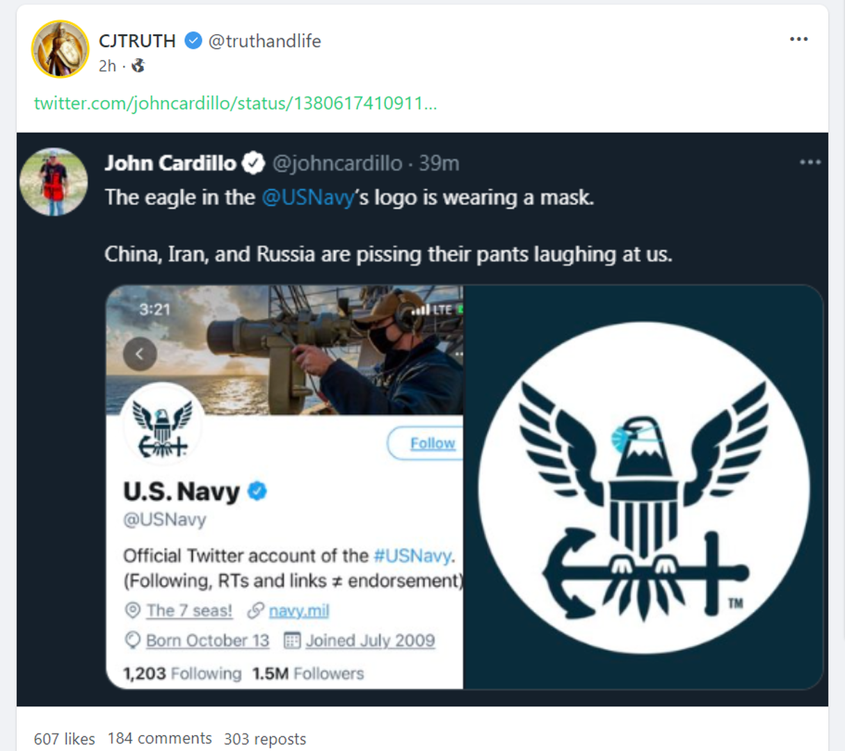 Forum Forums Current Events In The News Quick Takes This We... Notifications Clear all Quick Takes This Week - April 5, 2021 Page 4 / 4 Prev 1 2 3 4 In The News Last Post by Sallie Borrink 5 years ago 25 Posts 1 Users 48 Reactions 2,559 Views RSS Sallie Borrink (@sallie) Posts: 6885 Illustrious Member Admin Topic starter ♥ Wife, homeschooling mom, conspiracy analyst ♥ Posted : Friday, April 9, 2021 6:45 pm Amy C and Amanda reacted Page 4 / 4 Prev 1 2 3 4 Super Globals Requests: Server: Options and Features route: community use_home_url: url: https://sallieborrink.com/community/ pageid:145756 default_groupid: 3 2022
