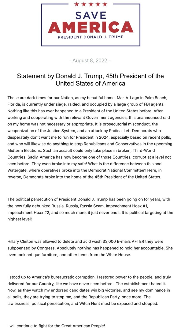 I think this is very likely. This is all about making it impossible for Trump to run again (as is the Jan 6 fake committee circus). I think they also may be trying to find information they want a great deal.