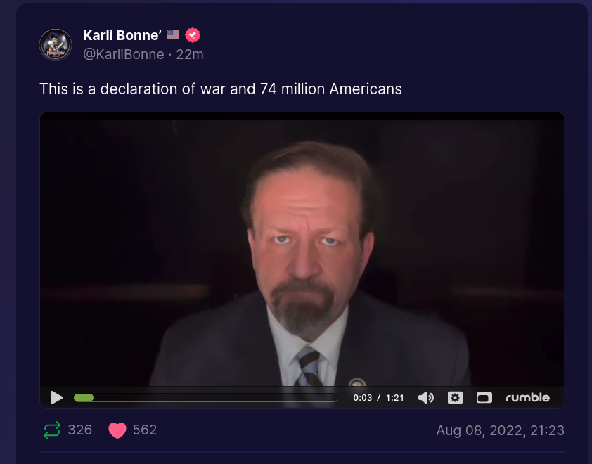 Link to watch video: https://truthsocial.com/@KarliBonne/posts/108790296741830729