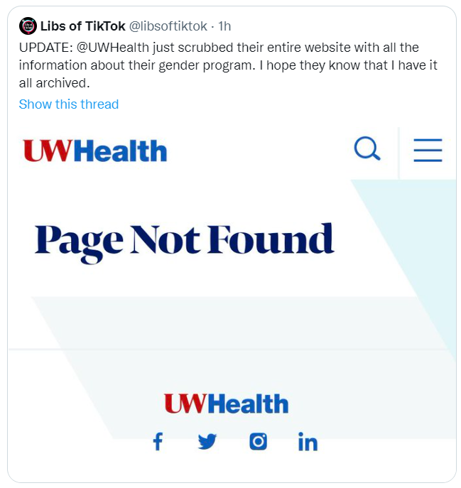 The materials from Boston Children’s Hospital showed that they were performing some of these surgeries on minors, and that since they follow the WPATH guidelines, they could, on a case by case basis, even perform genital surgery on minors as well. After the reporting went public, Boston Children’s Hospital scrubbed their videos from YouTube, and scrubbed their site as well.