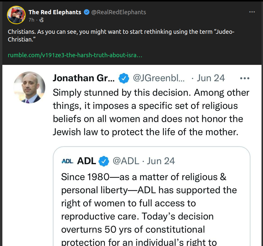 Forum Forums Current Events The Battle for West... ROE V WADE OVERTURN... Notifications Clear all ROE V WADE OVERTURNED - June 23, 2022 (Ongoing updates of all things related) Page 13 / 21 Prev 1 2 3 4 5 6 7 8 9 10 11 12 13 14 15 16 17 18 19 20 21 Next The Battle for Western Civilization Last Post by Sallie Borrink 3 years ago 161 Posts 1 Users 6 Reactions 3,294 Views RSS Sallie Borrink (@sallie) Posts: 6894 Illustrious Member Admin Topic starter ♥ Wife, homeschooling mom, conspiracy analyst ♥ Posted : Saturday, June 25, 2022 9:25 pm Sallie Borrink (@sallie) Posts: 6894 Illustrious Member Admin Topic starter ♥ Wife, homeschooling mom, conspiracy analyst ♥ Posted : Sunday, June 26, 2022 1:02 pm Sallie Borrink (@sallie) Posts: 6894 Illustrious Member Admin Topic starter ♥ Wife, homeschooling mom, conspiracy analyst ♥ Posted : Sunday, June 26, 2022 1:05 pm Sallie Borrink (@sallie) Posts: 6894 Illustrious Member Admin Topic starter ♥ Wife, homeschooling mom, conspiracy analyst ♥ Posted : Sunday, June 26, 2022 1:12 pm Sallie Borrink (@sallie) Posts: 6894 Illustrious Member Admin Topic starter ♥ Wife, homeschooling mom, conspiracy analyst ♥ Posted : Sunday, June 26, 2022 1:13 pm Sallie Borrink (@sallie) Posts: 6894 Illustrious Member Admin Topic starter ♥ Wife, homeschooling mom, conspiracy analyst ♥ Posted : Sunday, June 26, 2022 1:14 pm Sallie Borrink (@sallie) Posts: 6894 Illustrious Member Admin Topic starter ♥ Wife, homeschooling mom, conspiracy analyst ♥ Posted : Sunday, June 26, 2022 5:42 pm Sallie Borrink (@sallie) Posts: 6894 Illustrious Member Admin Topic starter Most Christians who support the idea of "Judeo-Christian beliefs" do not know this. ♥ Wife, homeschooling mom, conspiracy analyst ♥ Posted : Sunday, June 26, 2022 5:45 pm Page 13 / 21 Prev 1 2 3 4 5 6 7 8 9 10 11 12 13 14 15 16 17 18 19 20 21 Next Super Globals Requests: Server: Options and Features route: community use_home_url: url: https://sallieborrink.com/community/ pageid:145756 default_groupid: 3 2022