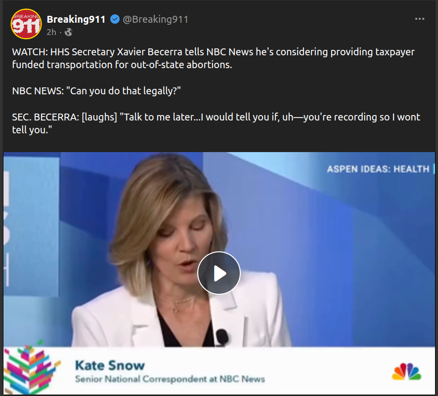 HHS wants to provide transportation for women to other states to get abortions. But he doesn't want to say it on camera.