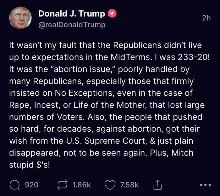 I can tell you this with certainty. Between the unease about the fact that he's STILL promoting the jabs and making statements like this, Trump is losing people from his core conservative Christian base. I don't know what he's thinking or who is advising him, but he's alienating a lot of people who are barely hanging on to their support of him.
