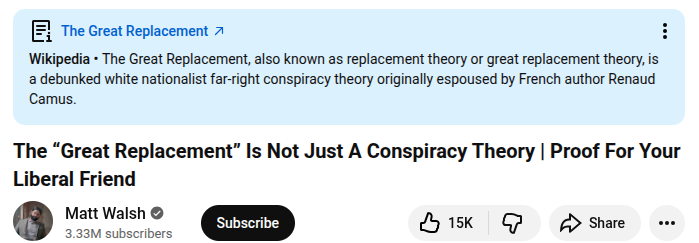 The Great Replacement is real and obvious to anyone who looks into it for fifteen minutes. It's not even difficult to prove at this point.