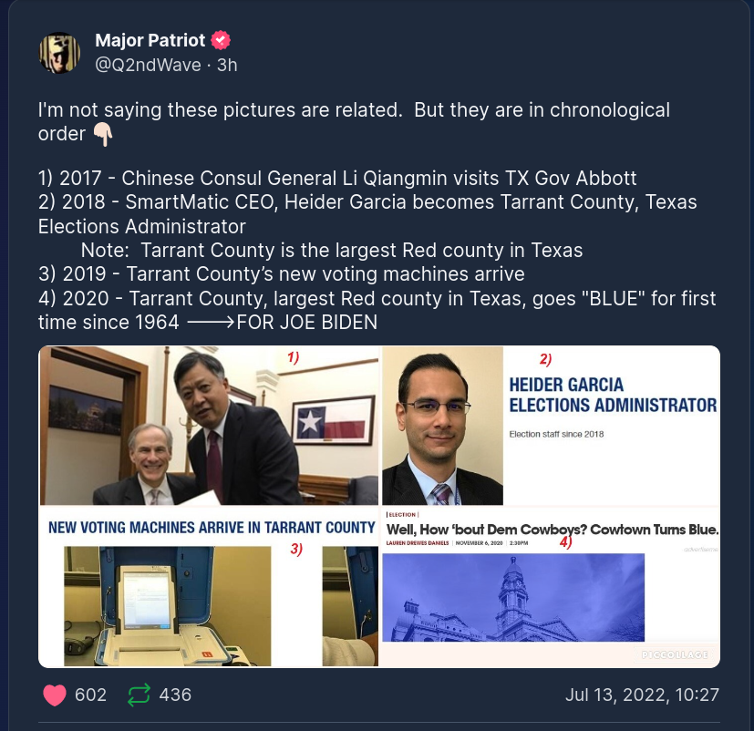 2) 2018 - SmartMatic CEO, Heider Garcia becomes Tarrant County, Texas Elections Administrator