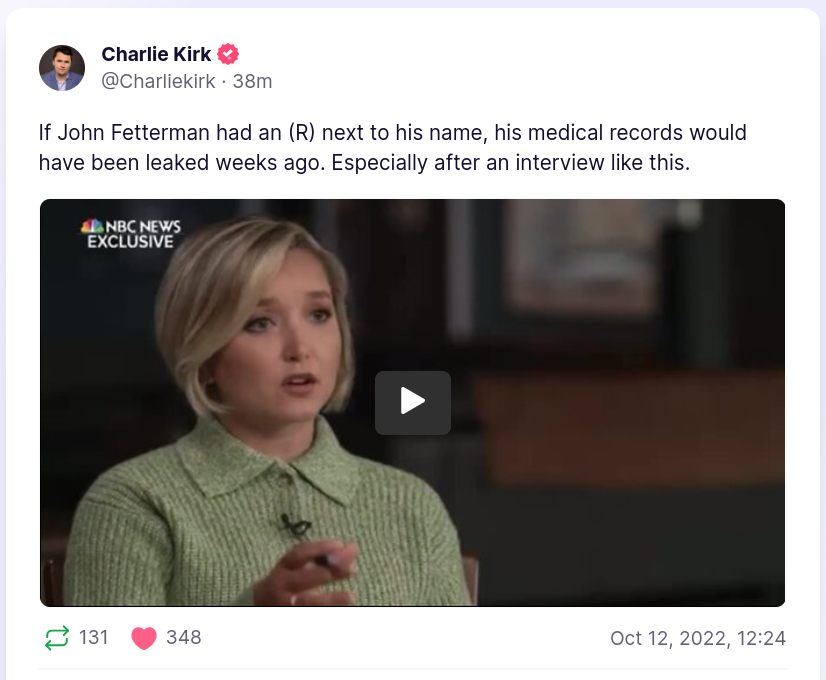 https://truthsocial.com/@Charliekirk/posts/109156229268553673