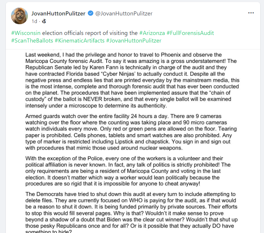 Ask yourself this. If this was "the most secure election in history" then why wouldn't Biden, Harris, and the DNC want to grind Trump and his supporters into the ground in humiliation by allowing them to unearth how terribly he was beated?